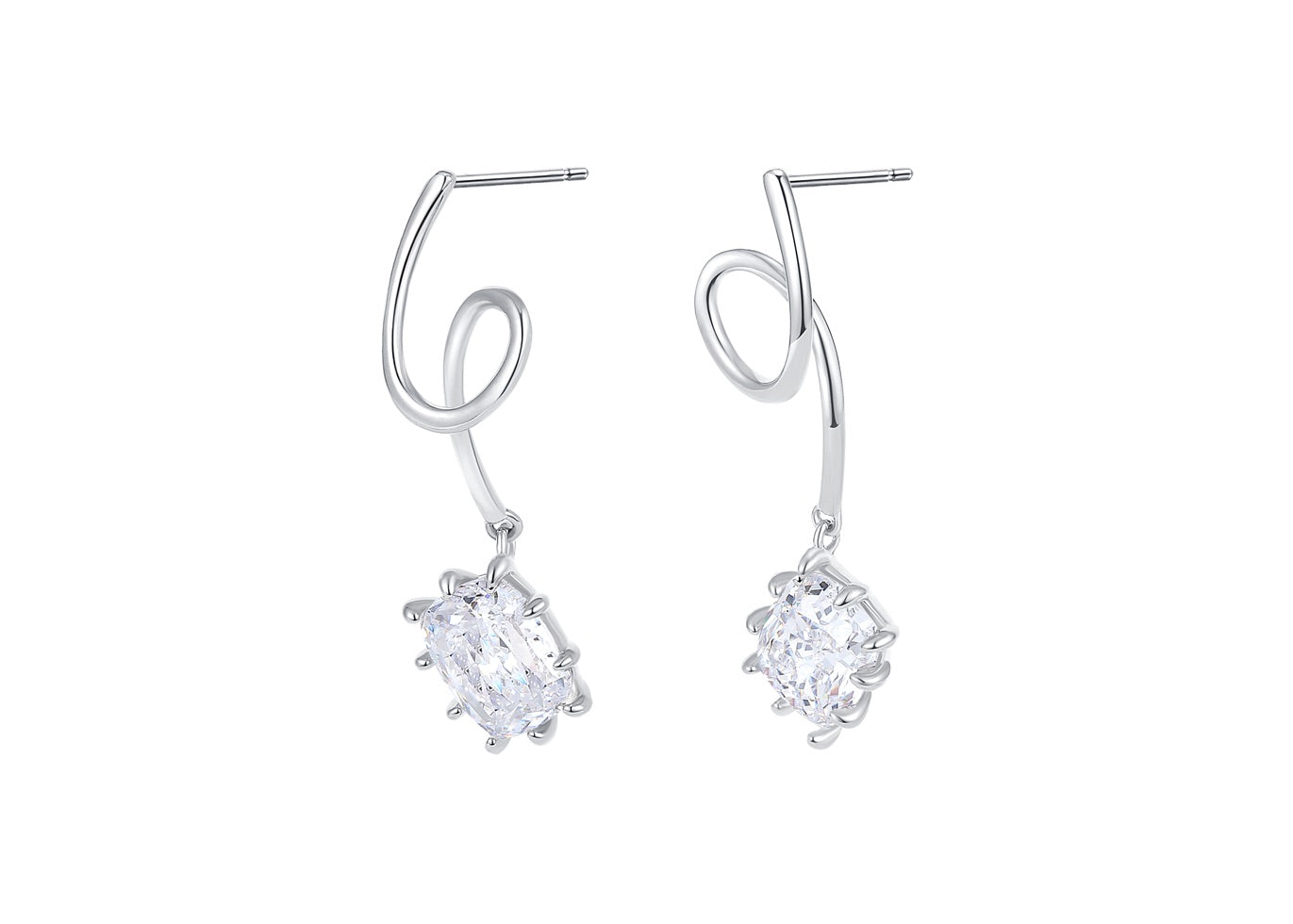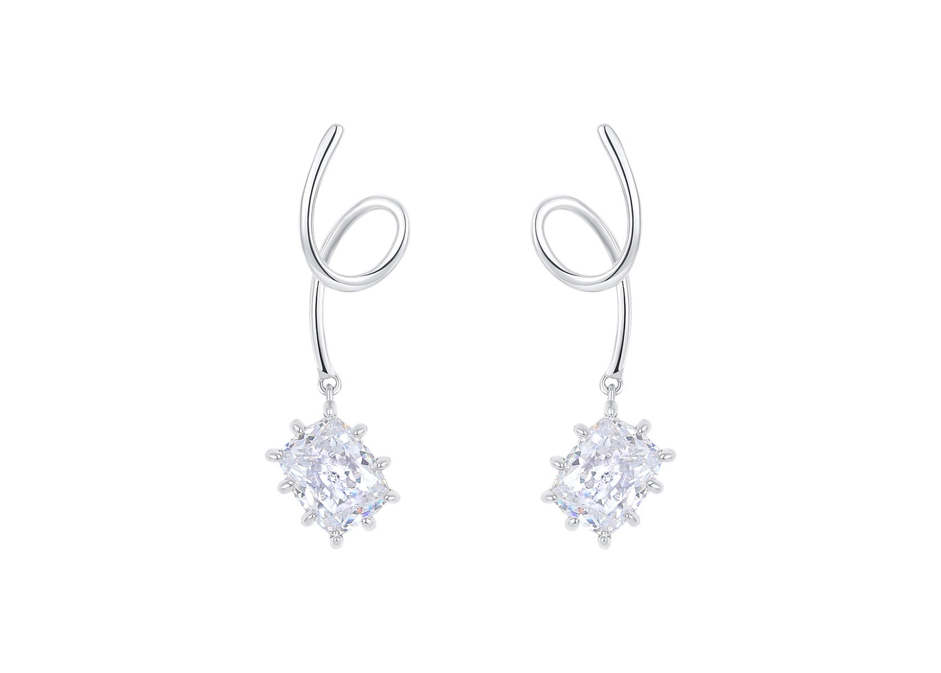 The earrings showcase an exquisite three-dimensional curve that adds a sophisticated twist to the overall design, perfectly capturing the essence of fluidity and movement.