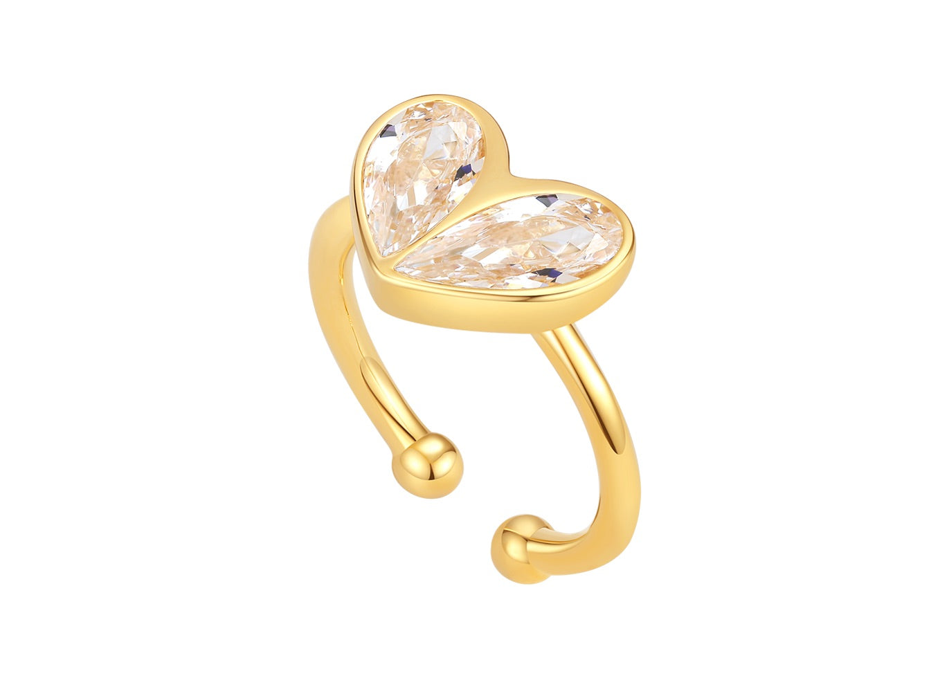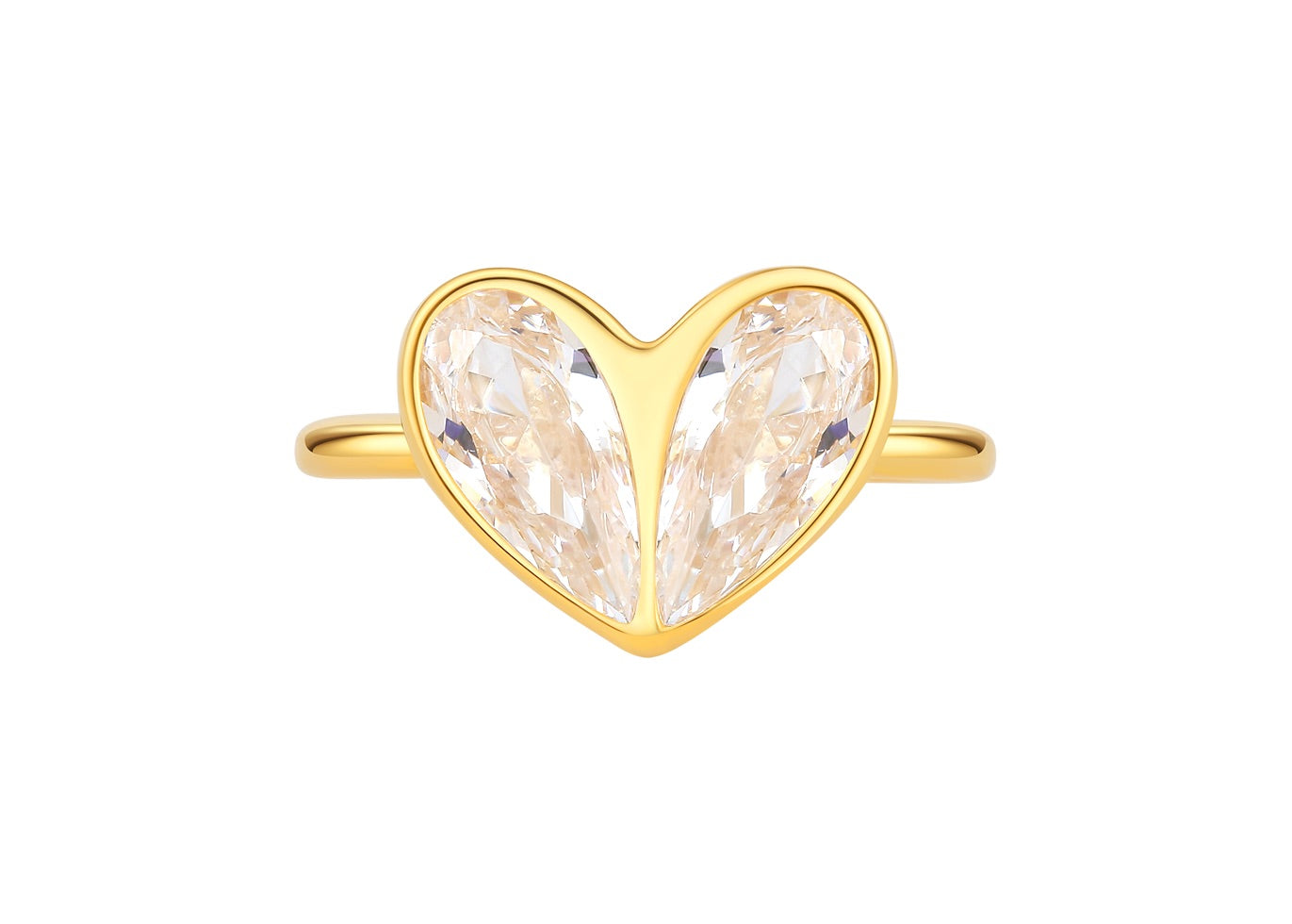 The bezel setting adds a three-dimensional depth to the heart, while the open band design provides the flexibility to wear it comfortably on any finger.
