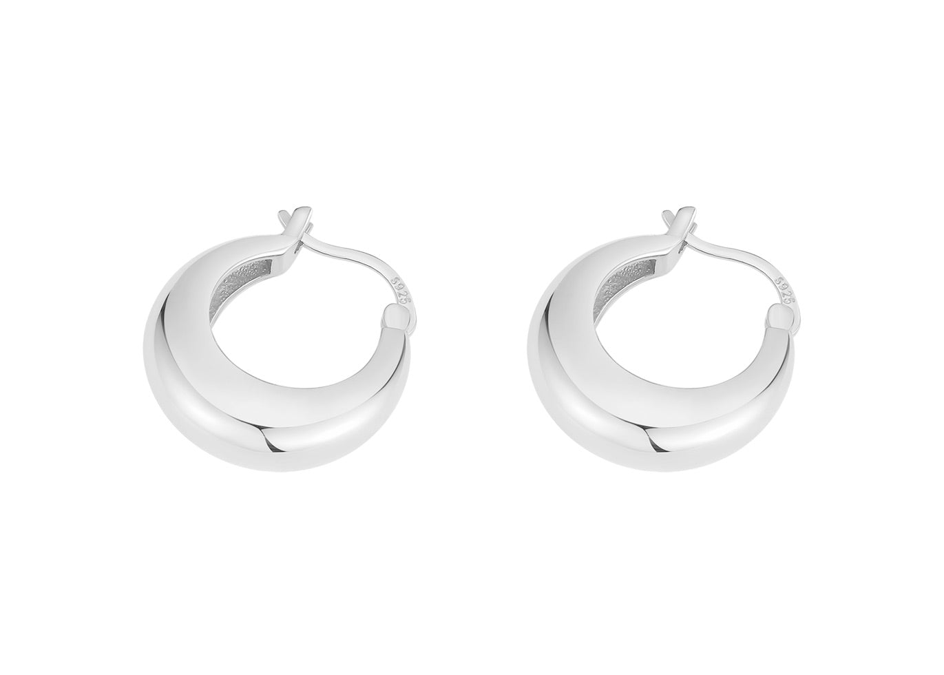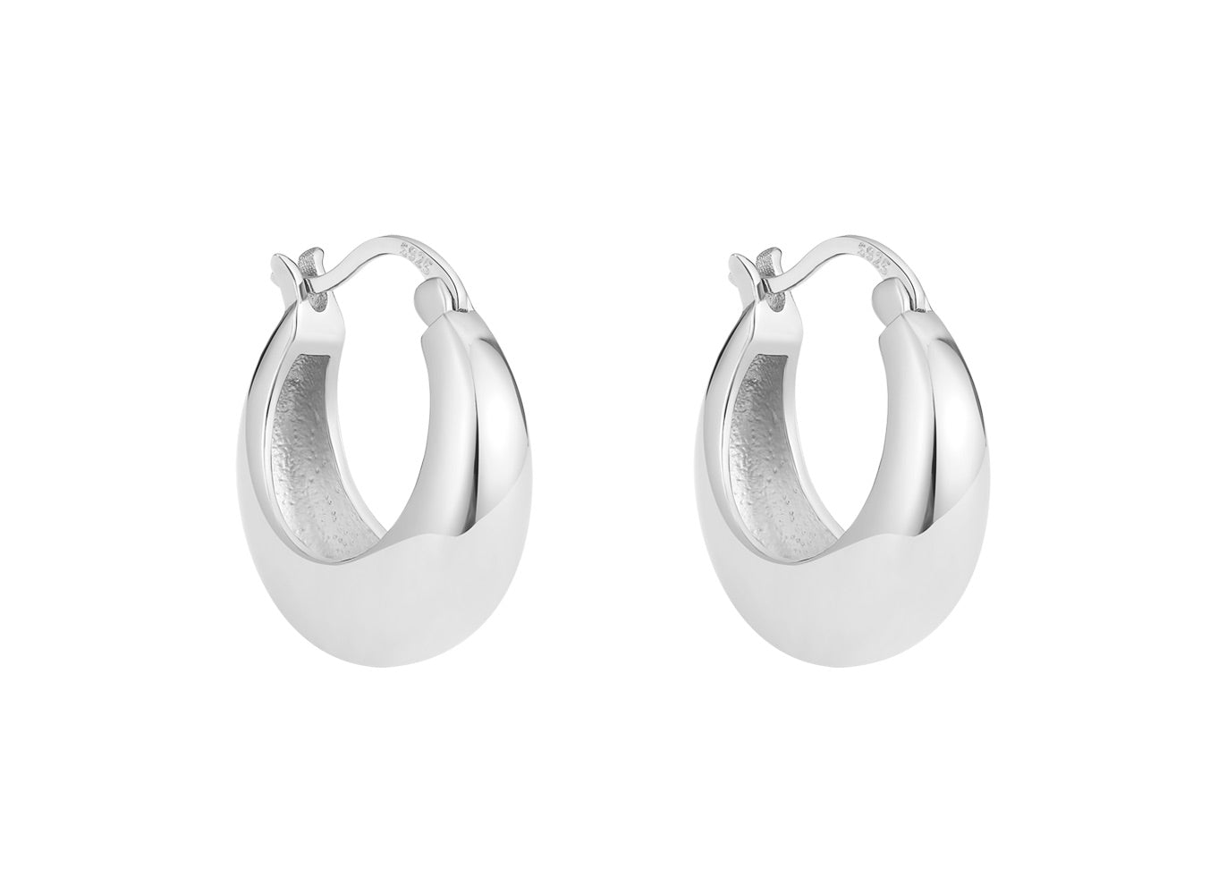 Sculpted with a full, rounded shape, these hoops feature a polished surface that mirrors light with an almost flawless reflection, creating a look of effortless sophistication.
