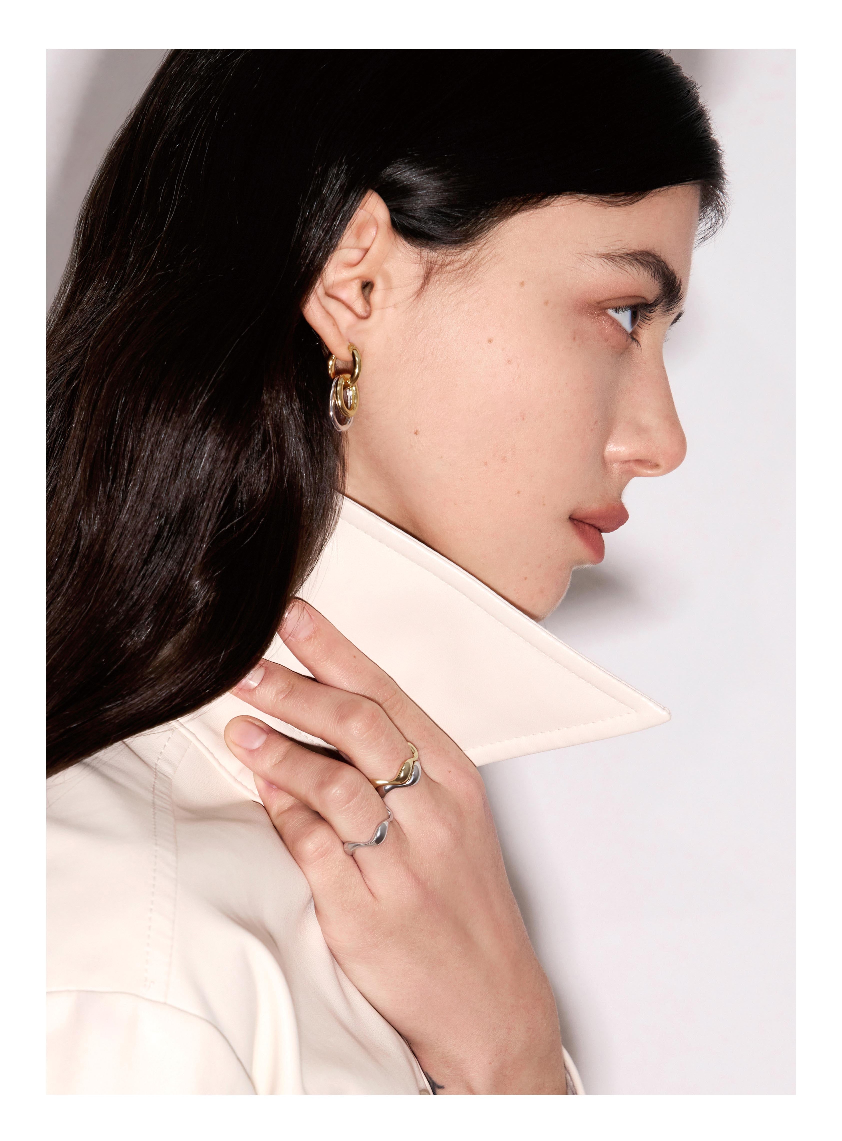 The Gentle Metal Collection transforms metal into fluid expressions of strength. This collection reimagines metallic allure, blending bold structure with soft curves.