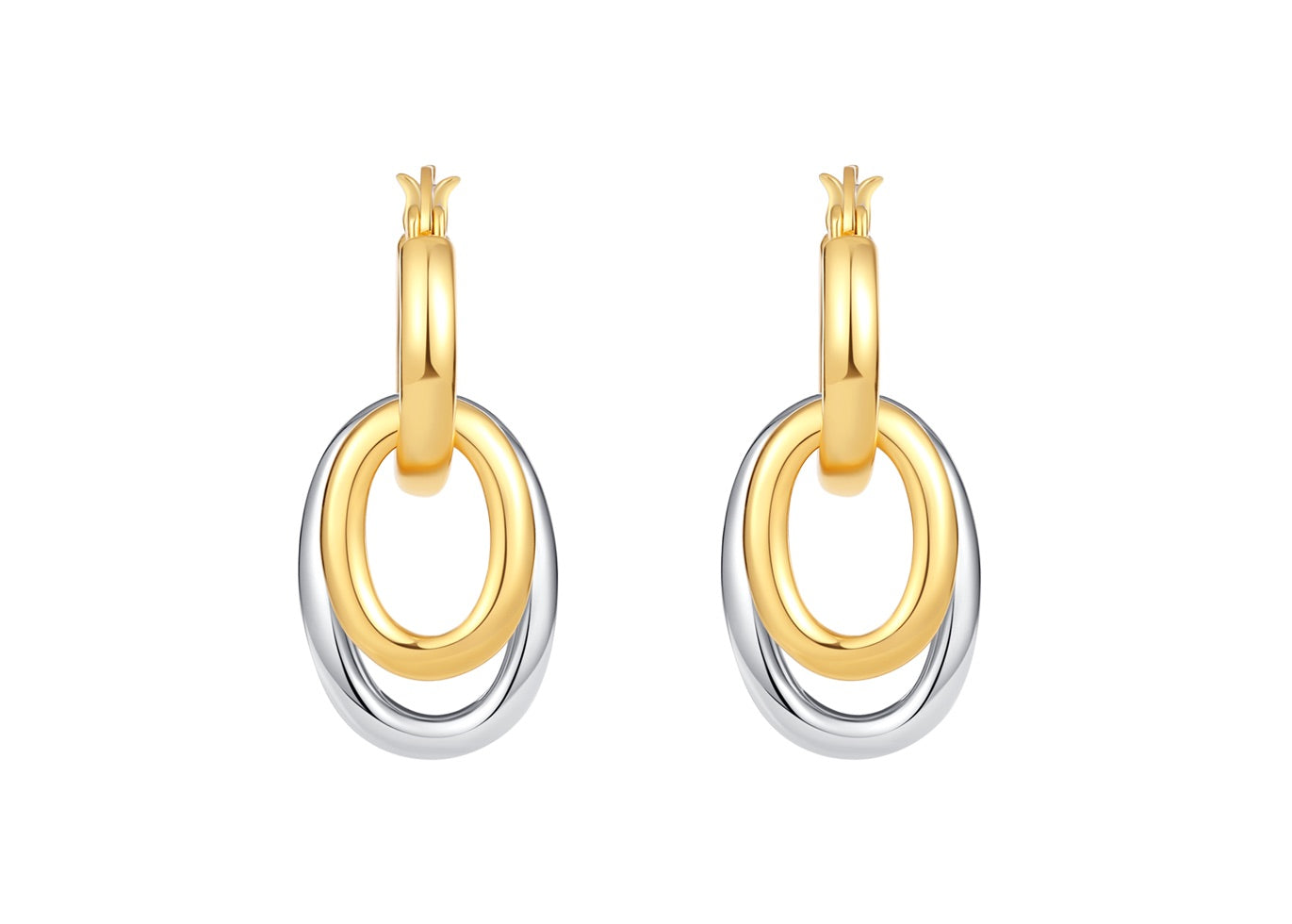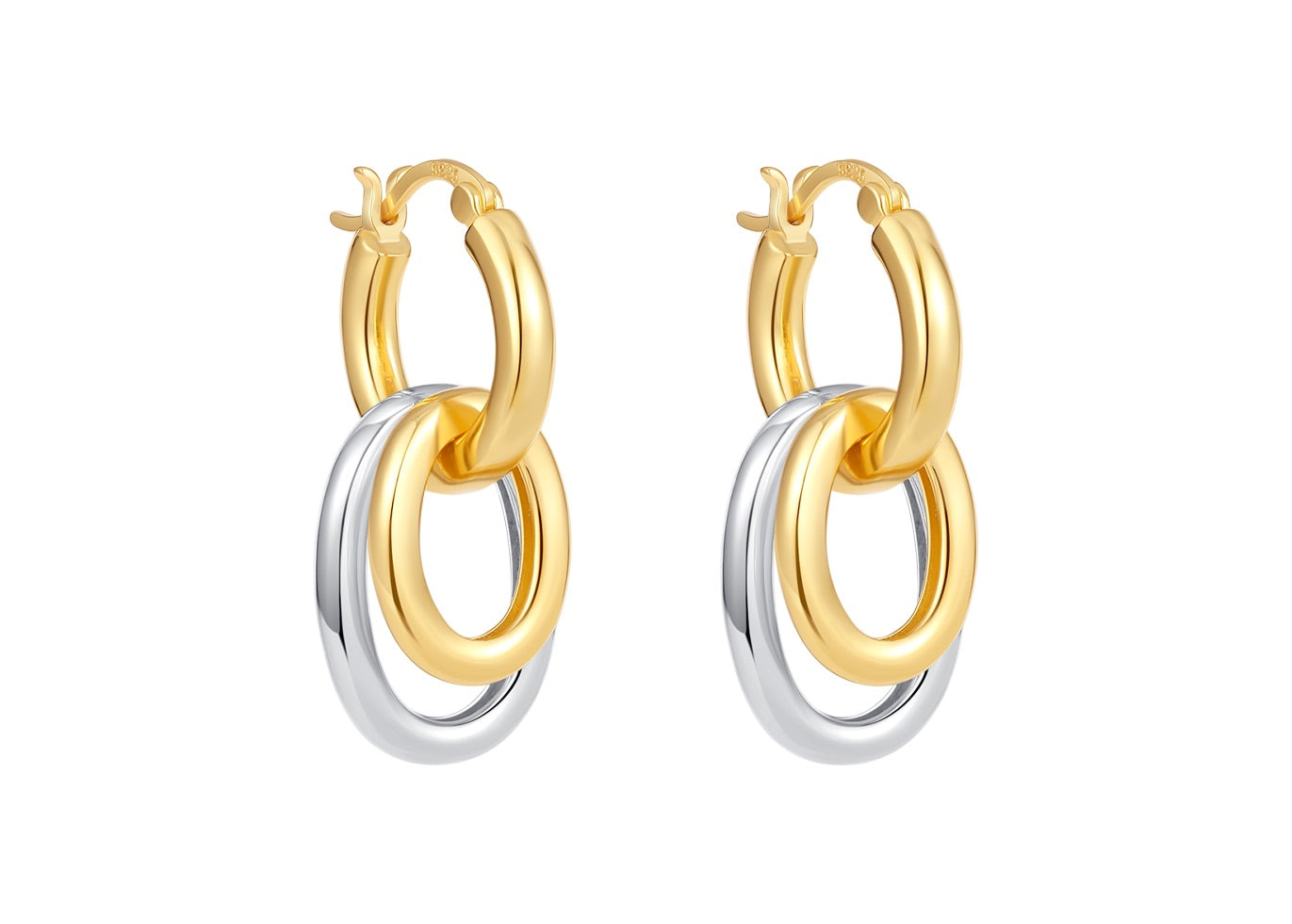 Crafted from 925 silver, the earrings are plated in 18K gold and rhodium, presenting a refined contrast. Also available in a monochromatic rhodium-plated option for a streamlined look.