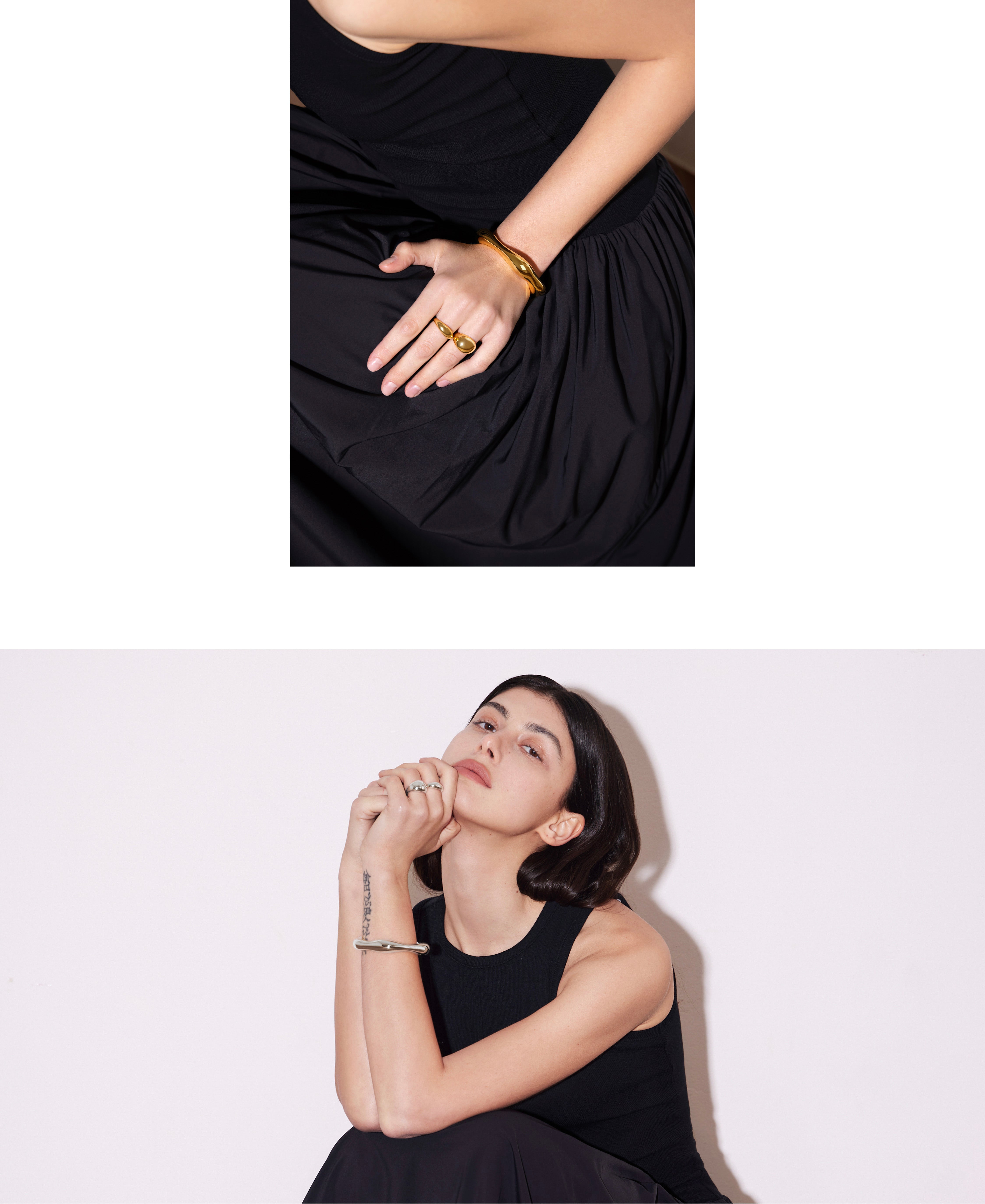 The Gentle Metal Collection transforms metal into fluid expressions of strength. This collection reimagines metallic allure, blending bold structure with soft curves.