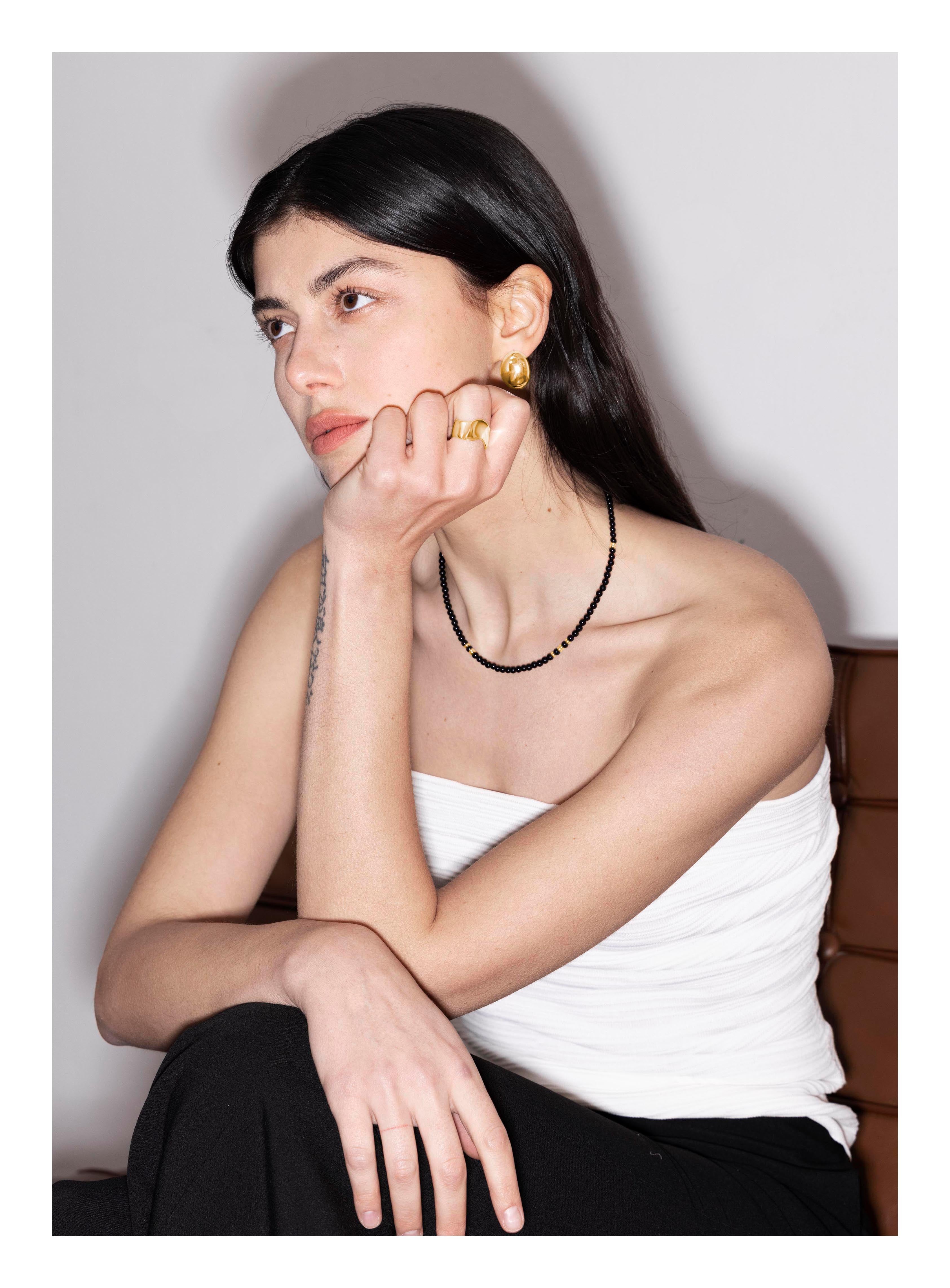 Paired with earrings from the Gentle Metal collection, the gleam of the metal adds a vibrant touch of modernity to any ensemble, creating a cohesive and stylish statement.
