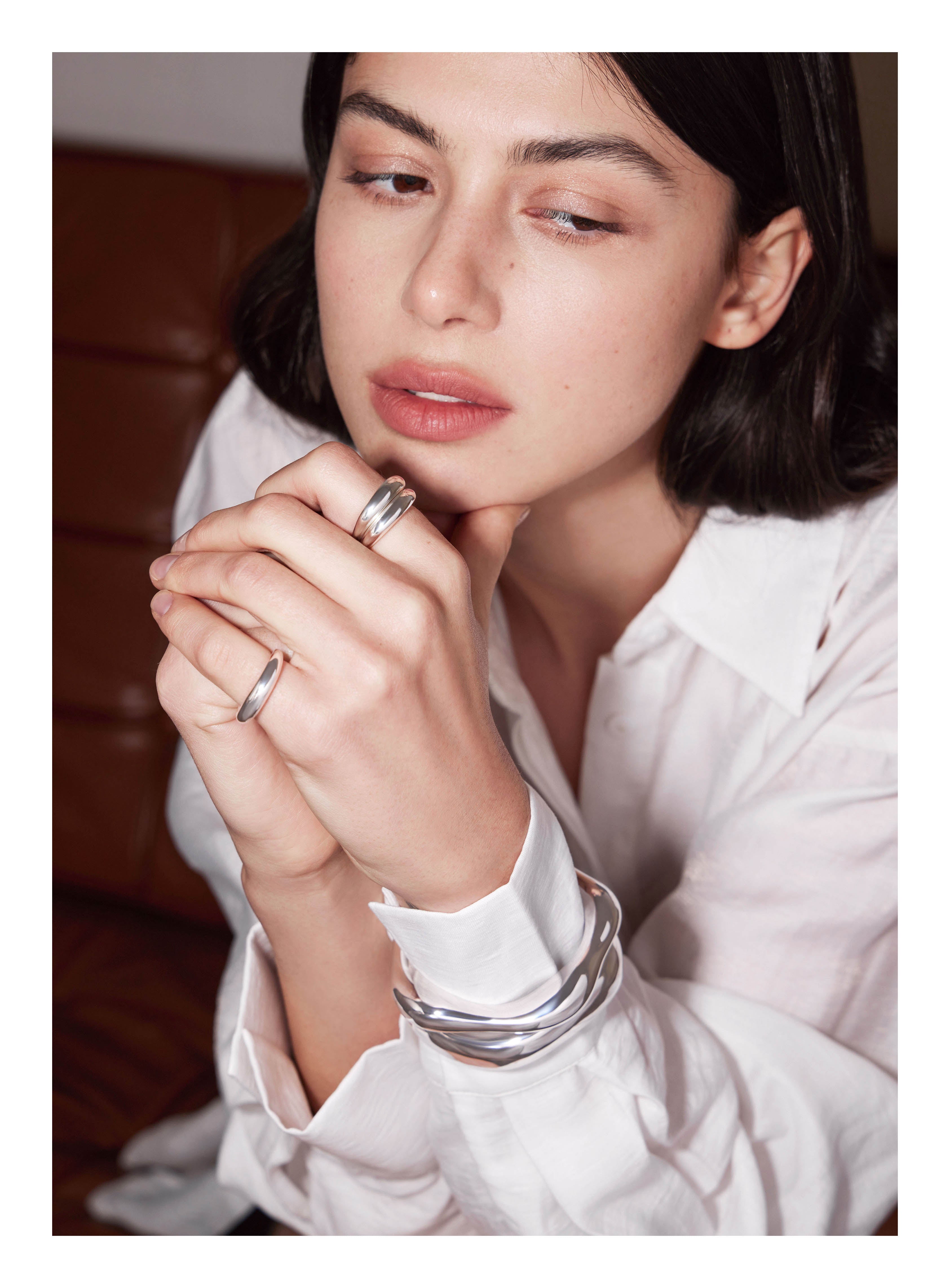The Gentle Metal Collection transforms metal into fluid expressions of strength. This collection reimagines metallic allure, blending bold structure with soft curves.