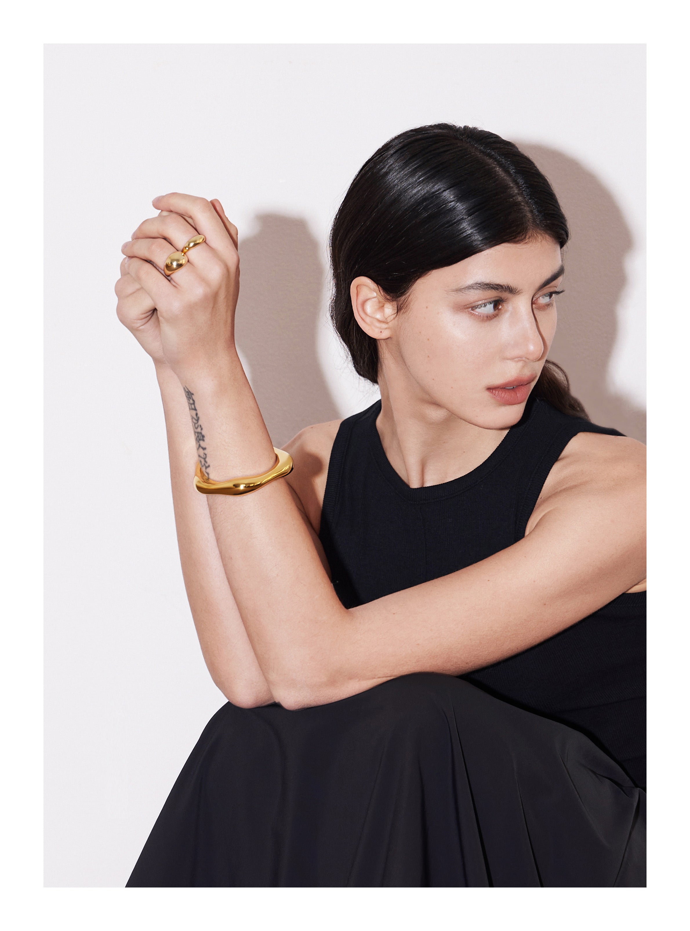 Gold is the perfect complement to black, and this ring shines when paired with sleek monochromatic outfits.