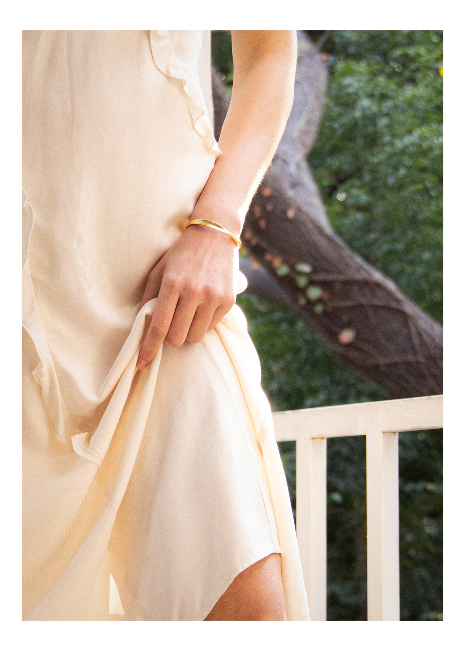 Sculptural and fluid, the Melted Silk Cuff evokes the quiet drama of draped fabric cast in metal. A soft edge meets strong form — a modern classic with tactile grace.