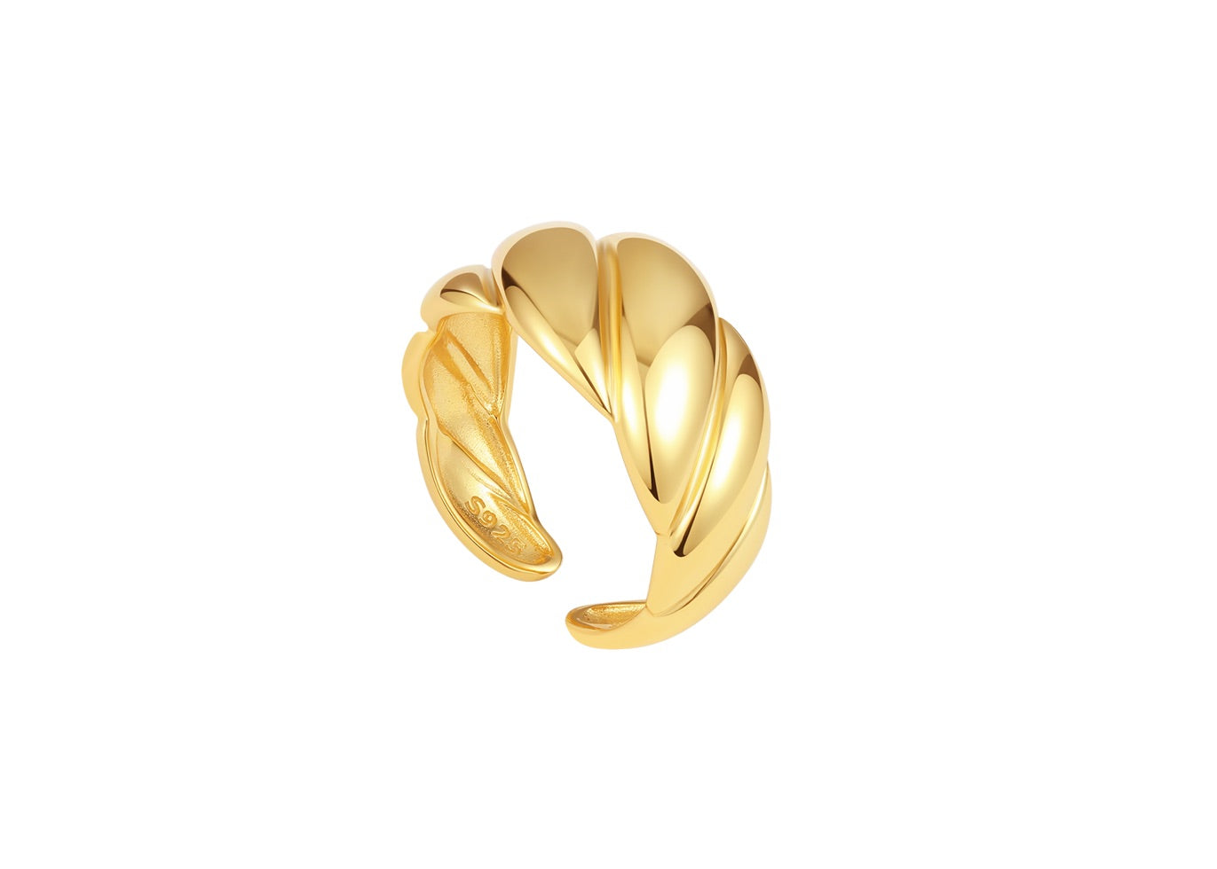 Exquisite in its simplicity, the ring's knotted design features full-bodied, contoured twists that create an impression of fluidity and motion. The sculptural lines form a bold yet refined silhouette, catching the light with every angle.