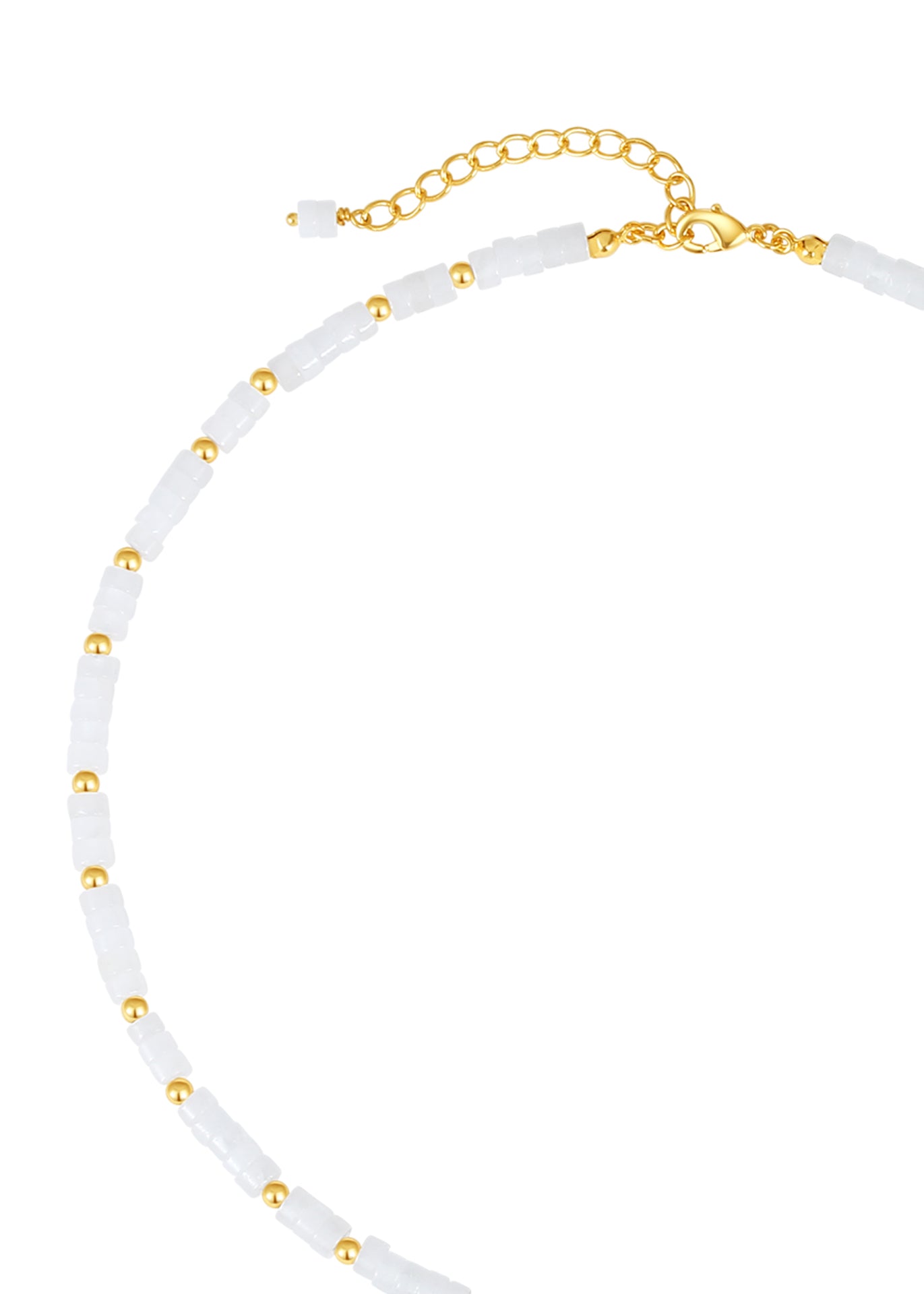This necklace features beads of natural white quartz, meticulously arranged to highlight their pristine beauty.
