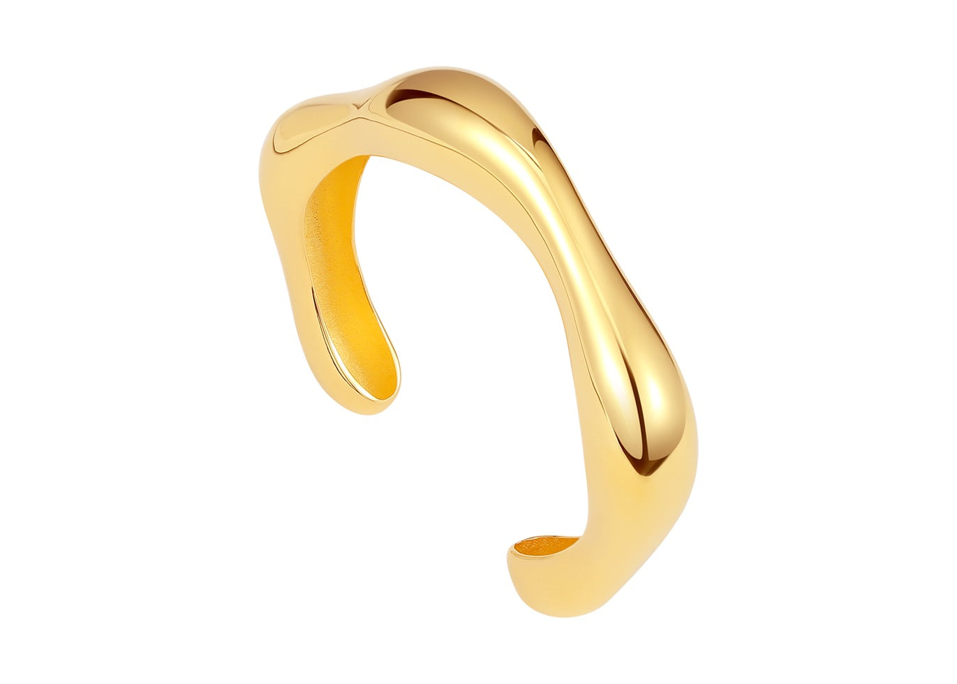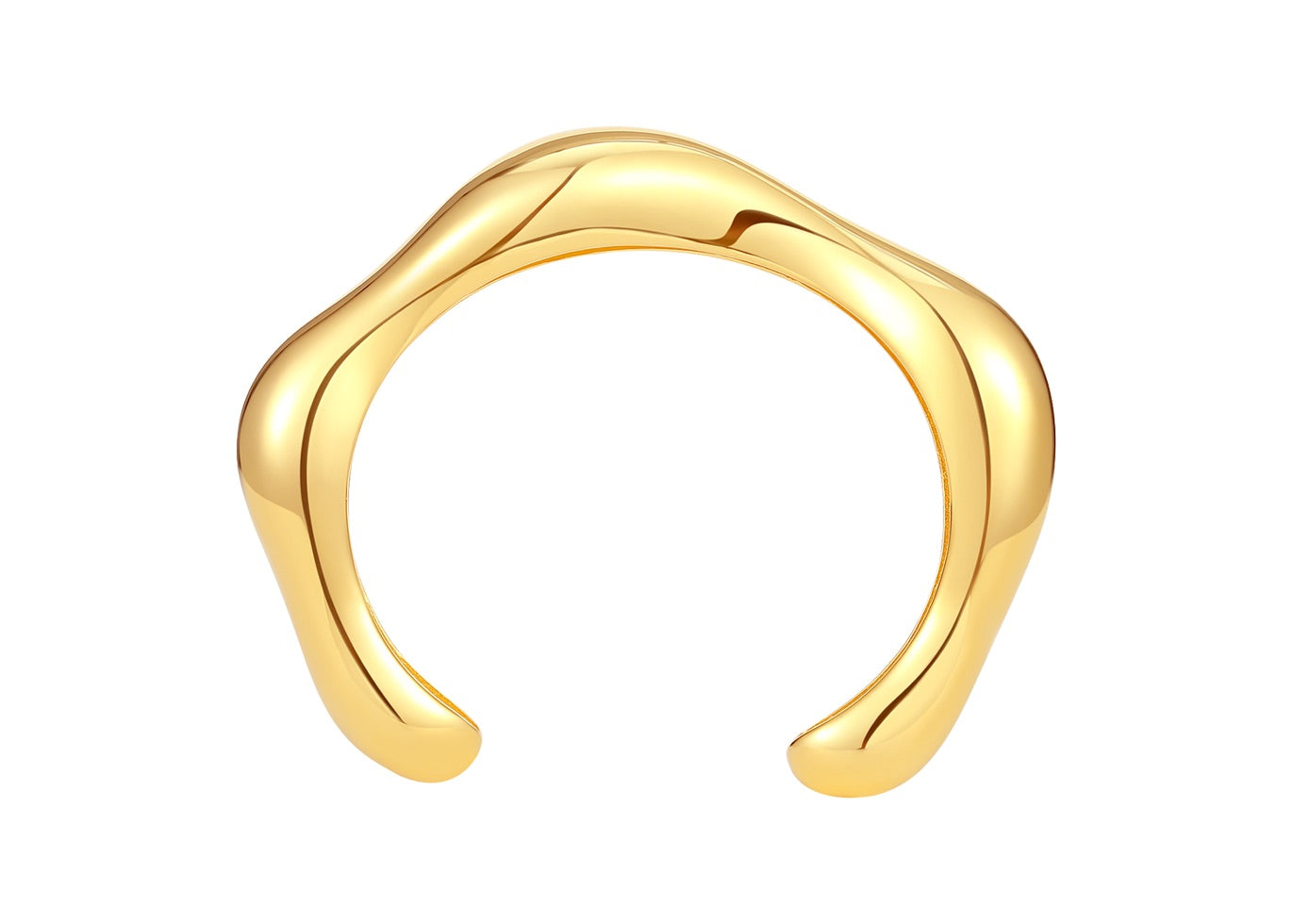 The cuff bracelet’s design is an artistic representation of liquid flow, with undulating, asymmetrical curves that create a dynamic, organic silhouette.